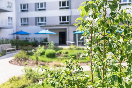 Auch auf jeder Etage gibt es für die einzelnen Wohngruppe einen eigenen Aufenthaltsraum mit Wohnküche sowie große Außenflächen und Balkone, die den Bewohnern vielfältige Möglichkeiten bieten.